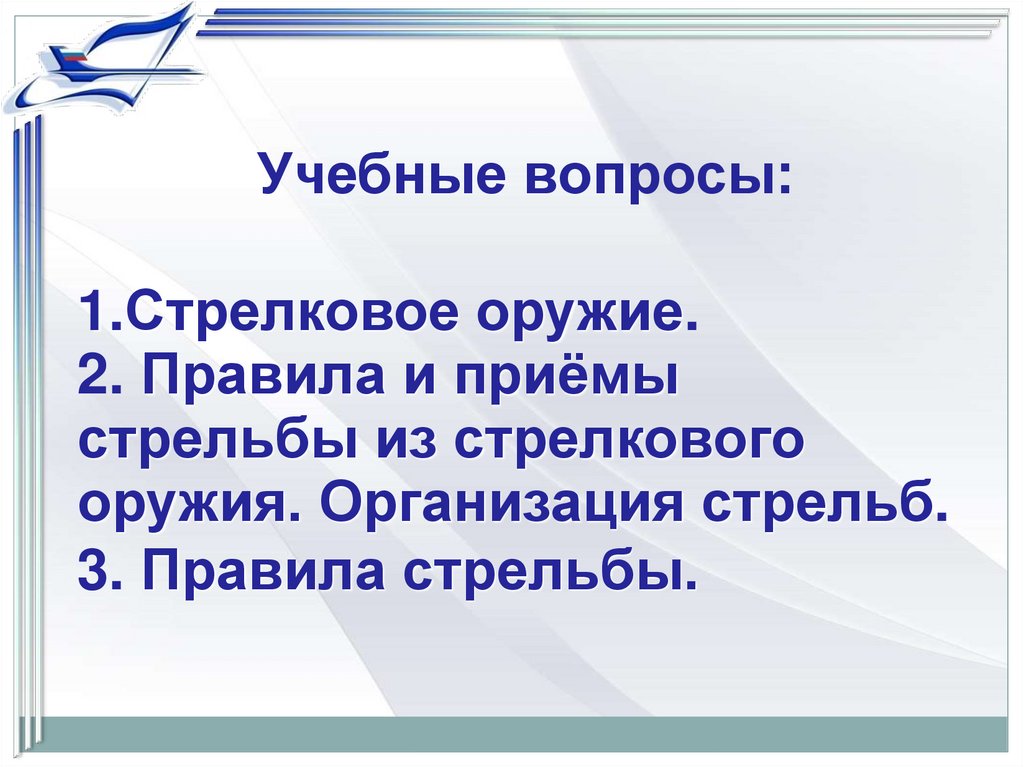 Учебные вопросы:1.Стрелковое оружие.
