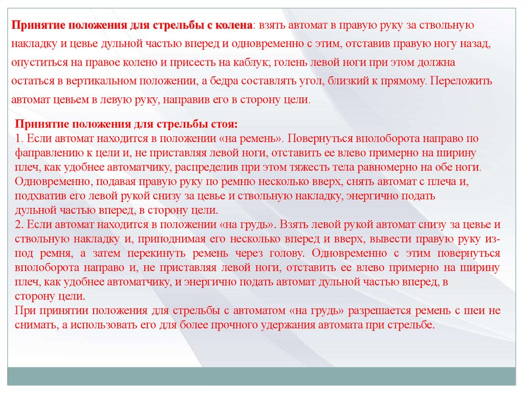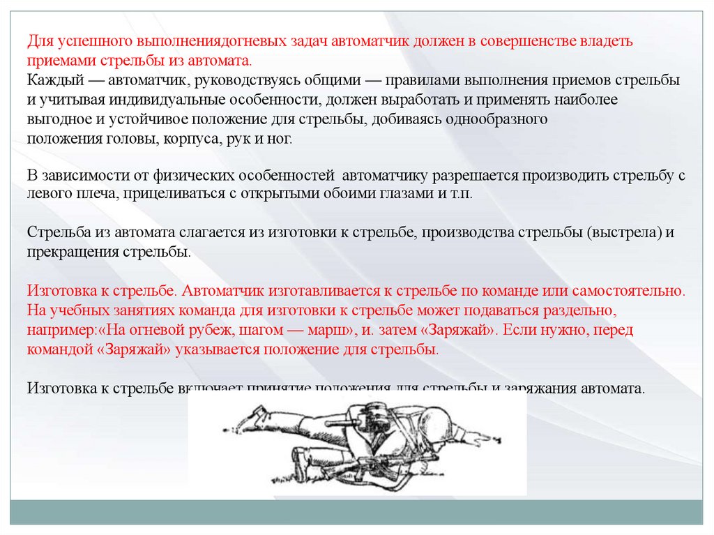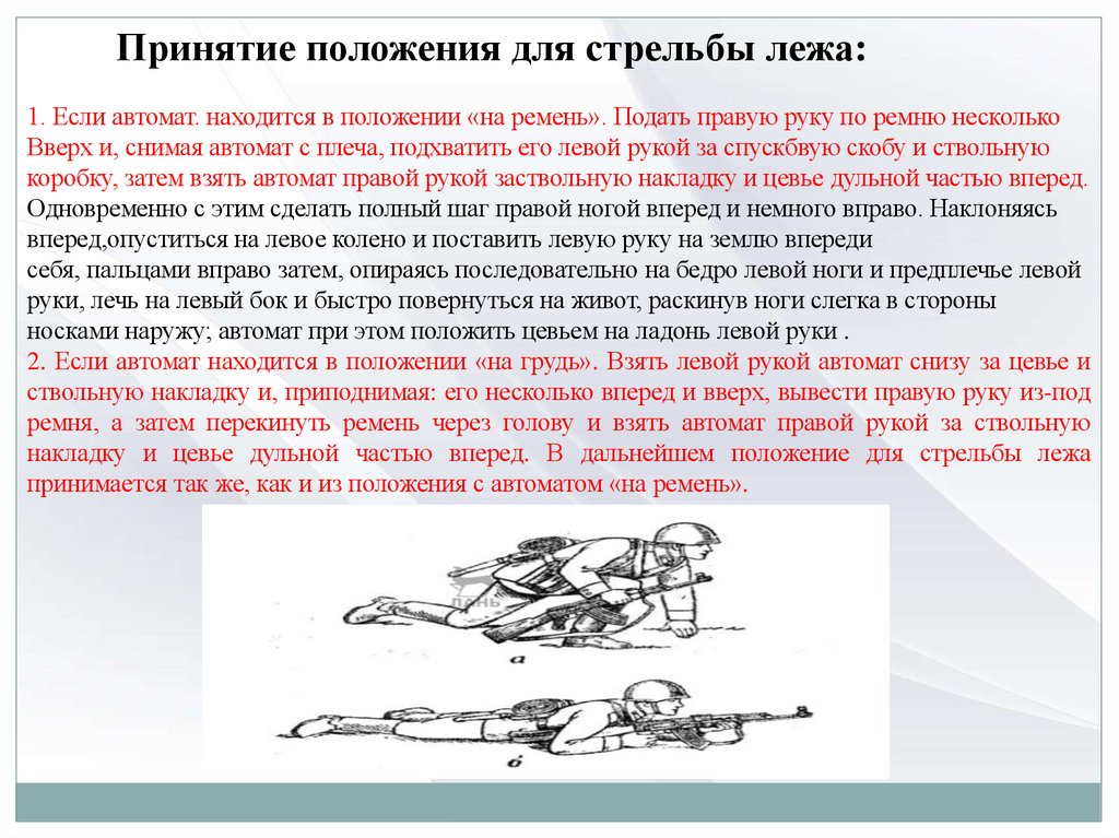 по которой необходимо:принять положение изготовки для стрельбы стоя;.