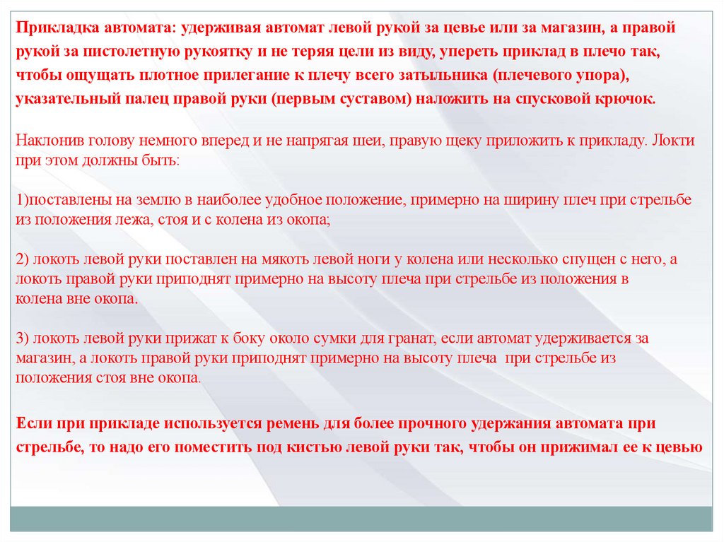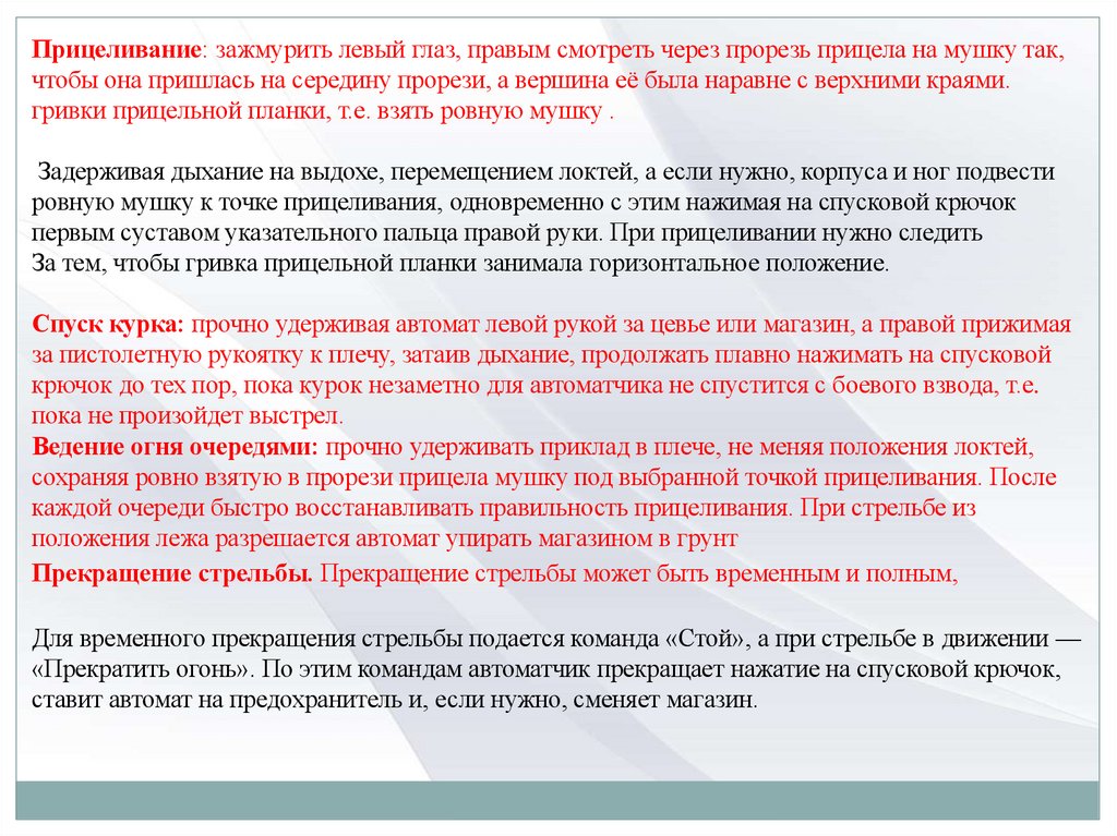 правилам прицеливания и производства стрельбы.