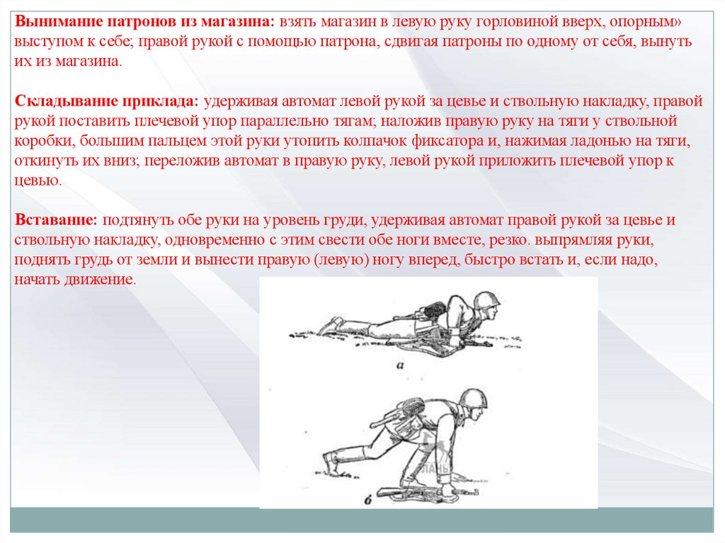 руки прижать магазин к цевью автомата;