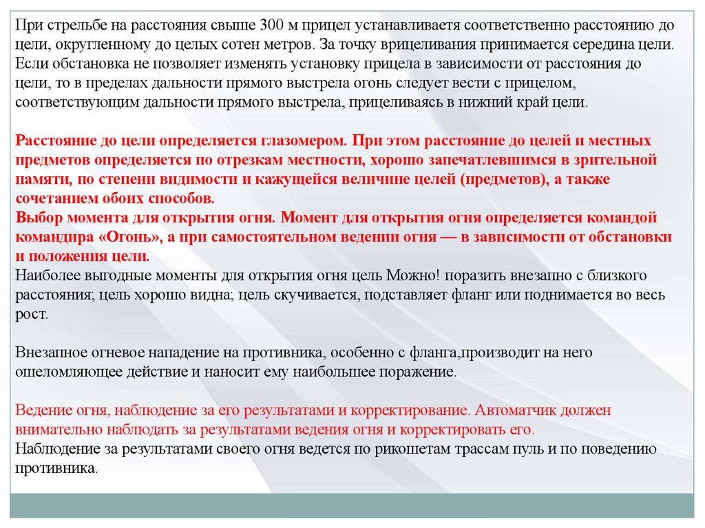 Ведение огня, наблюдение за его результатами и корректирование. Автоматчик должен