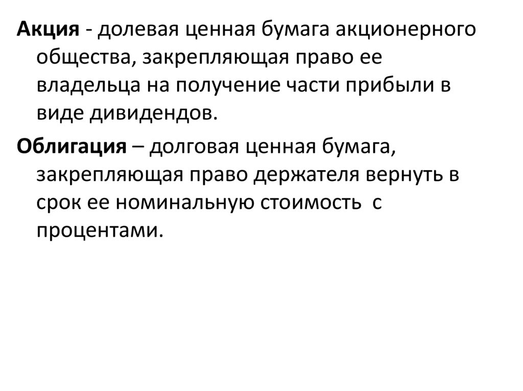 Акция - долевая ценная бумага акционерногообщества, закрепляющая право ее
