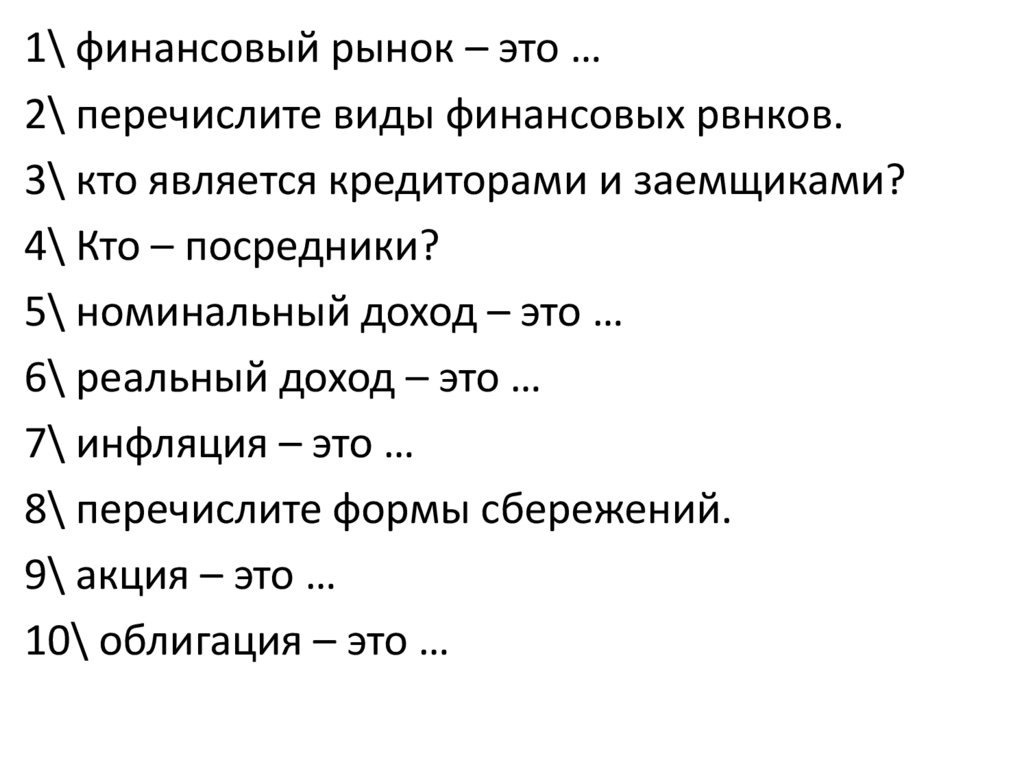 1\ финансовый рынок – это …2\ перечислите виды финансовых рвнков.