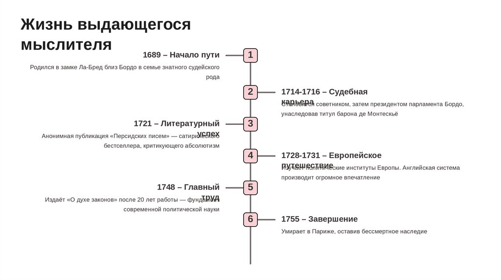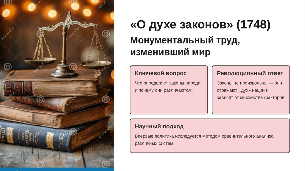 Издаёт «О духе законов» после 20 лет работы — фундамент