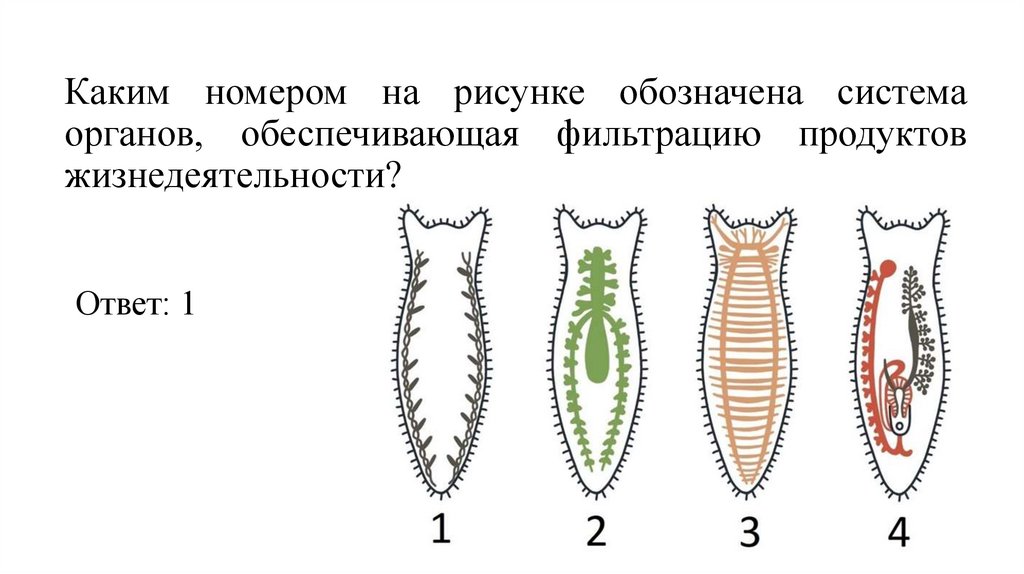 Каким номером на рисунке обозначена системаорганов, обеспечивающая фильтрацию продуктов