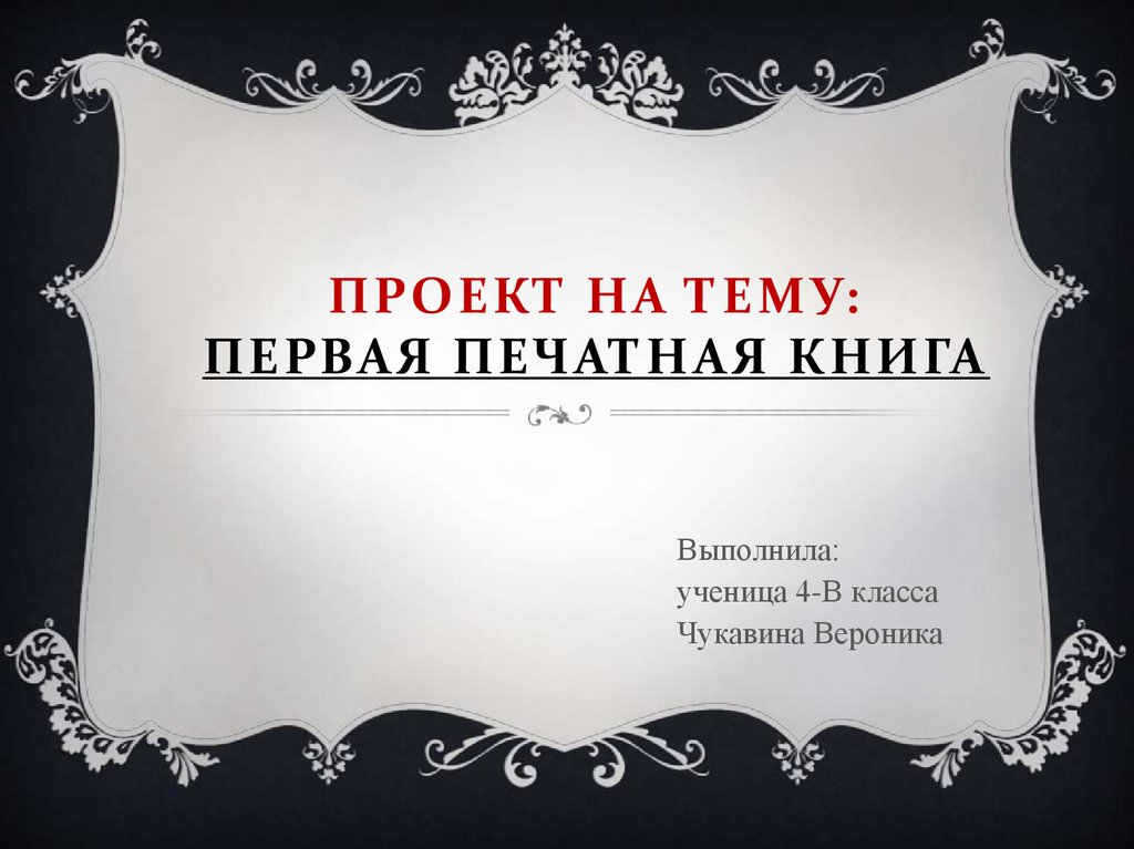 ПРОЕКТ НА ТЕМУ:ПЕРВАЯ ПЕЧАТНАЯ КНИГА