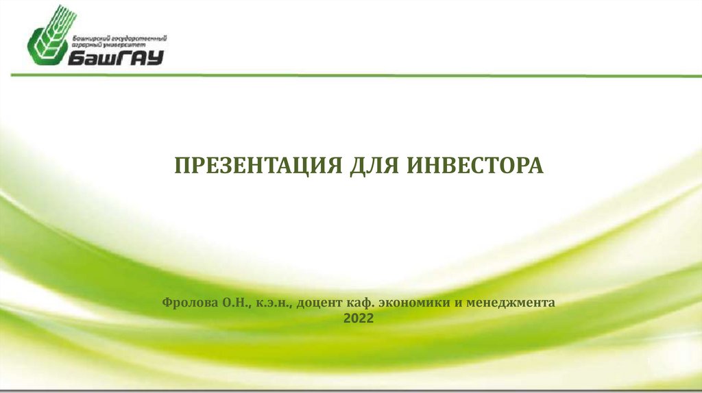 ПРЕЗЕНТАЦИЯ ДЛЯ ИНВЕСТОРАФролова О.Н., к.э.н., доцент каф. экономики и менеджмента