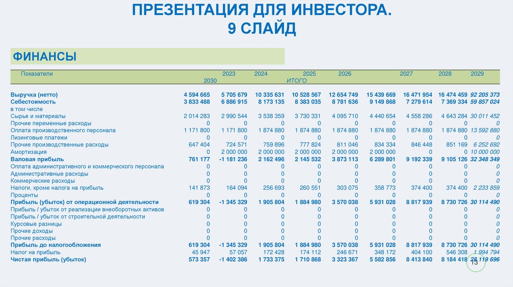ПРЕЗЕНТАЦИЯ ДЛЯ ИНВЕСТОРА.10 СЛАЙД