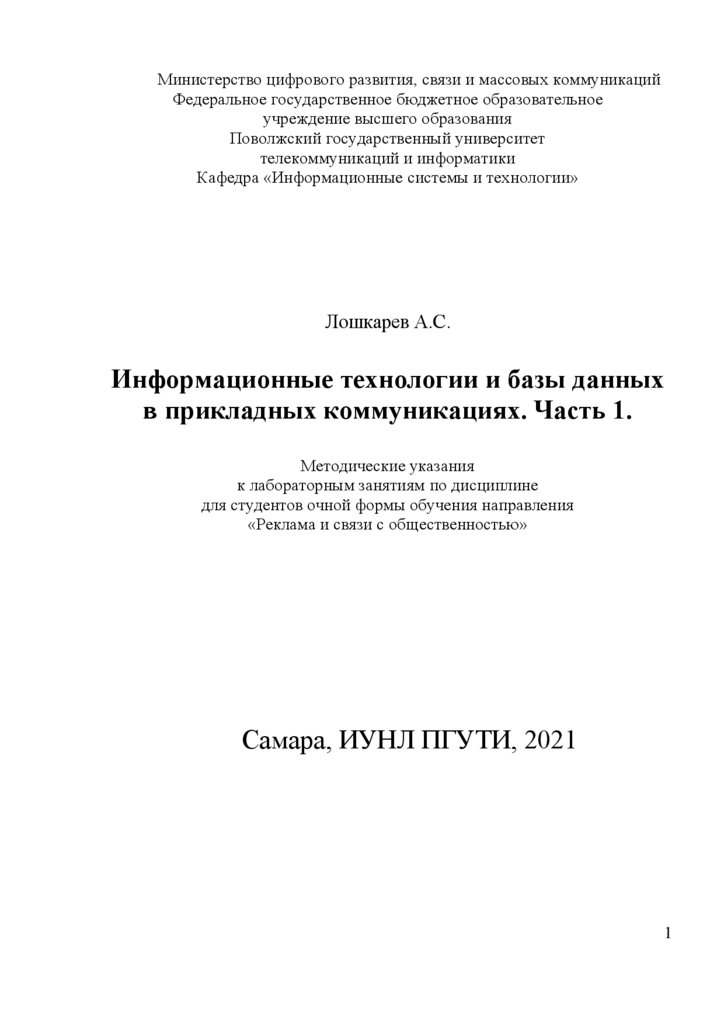 Информационные технологии и базы данных в прикладных коммуникациях.