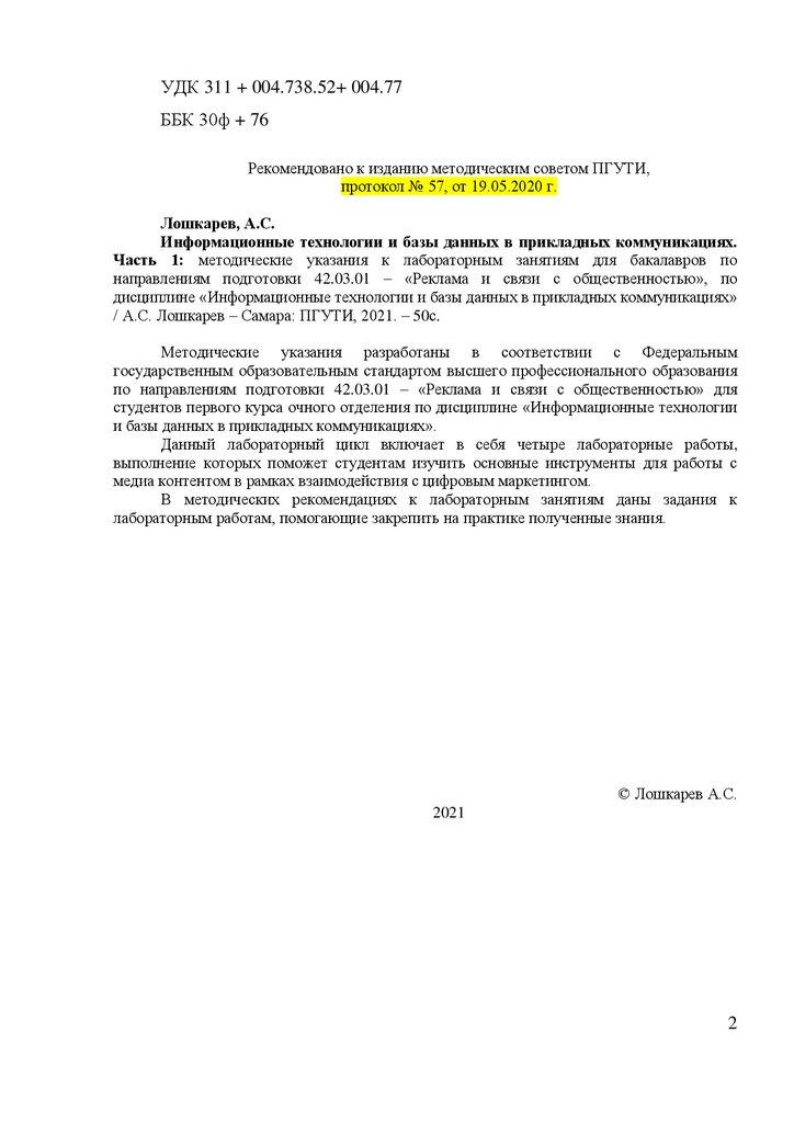 / А.С. Лошкарев – Самара: ПГУТИ, 2021. – 50с.