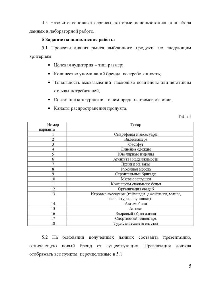 5.1 Провести анализ рынка выбранного продукта по следующим