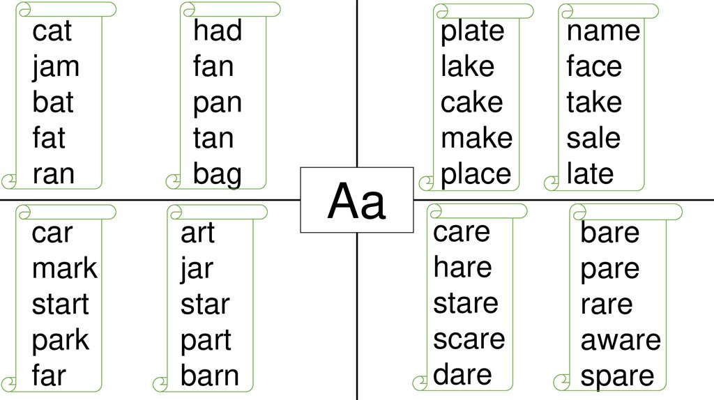 Reading CardsAa, Oo, Ii, Uu, Ee, Yy