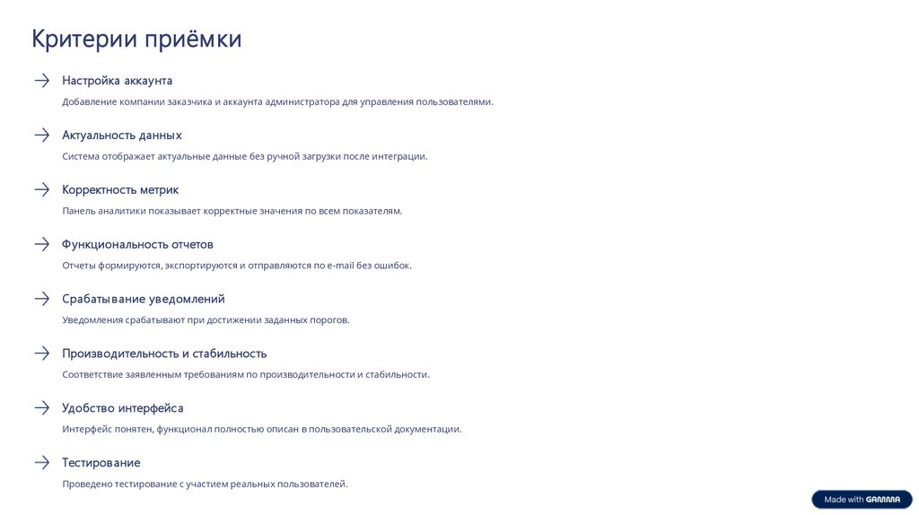 Критерии приёмкиНастройка аккаунта