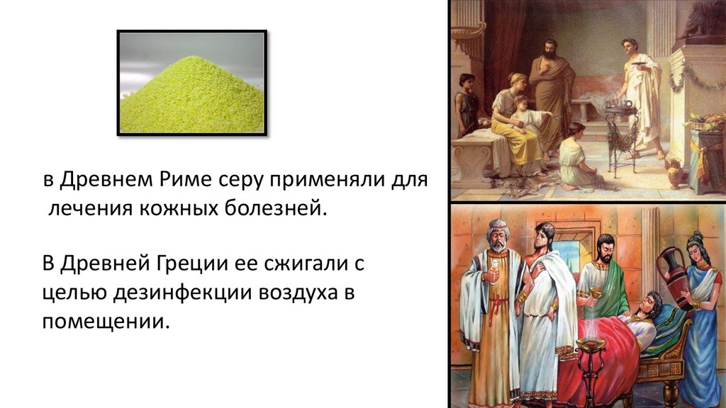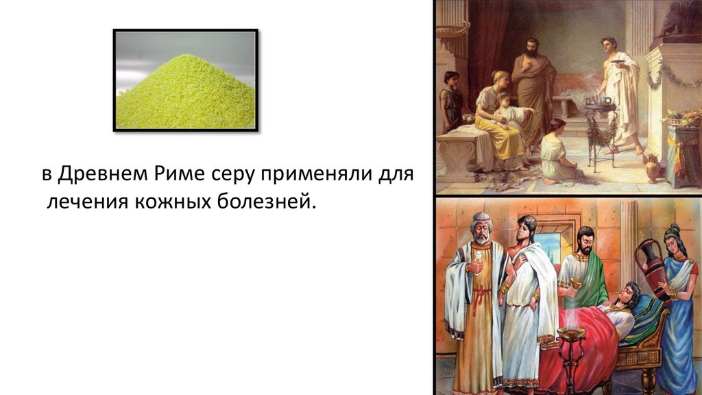 в Древнем Риме серу применяли длялечения кожных болезней.