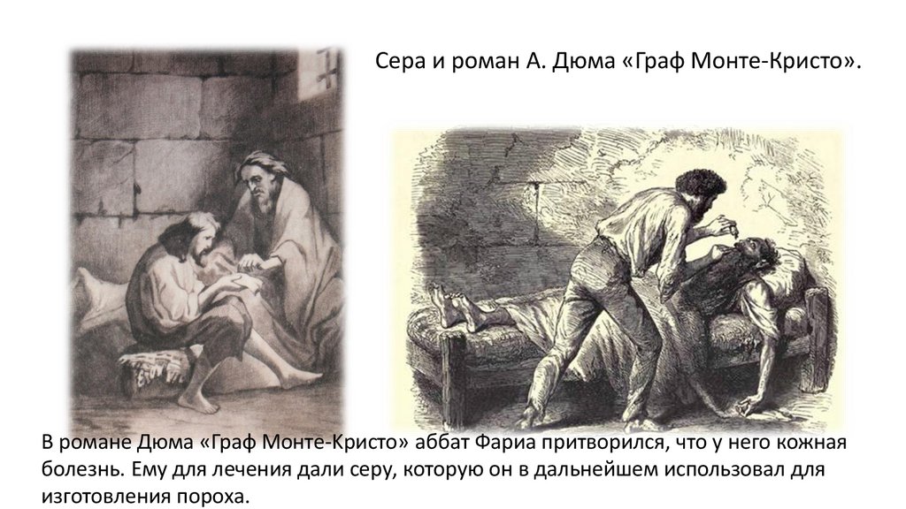 Сера и роман А. Дюма «Граф Монте-Кристо».В романе Дюма «Граф Монте-Kристо» аббат Фариа притворился, что у него кожная
