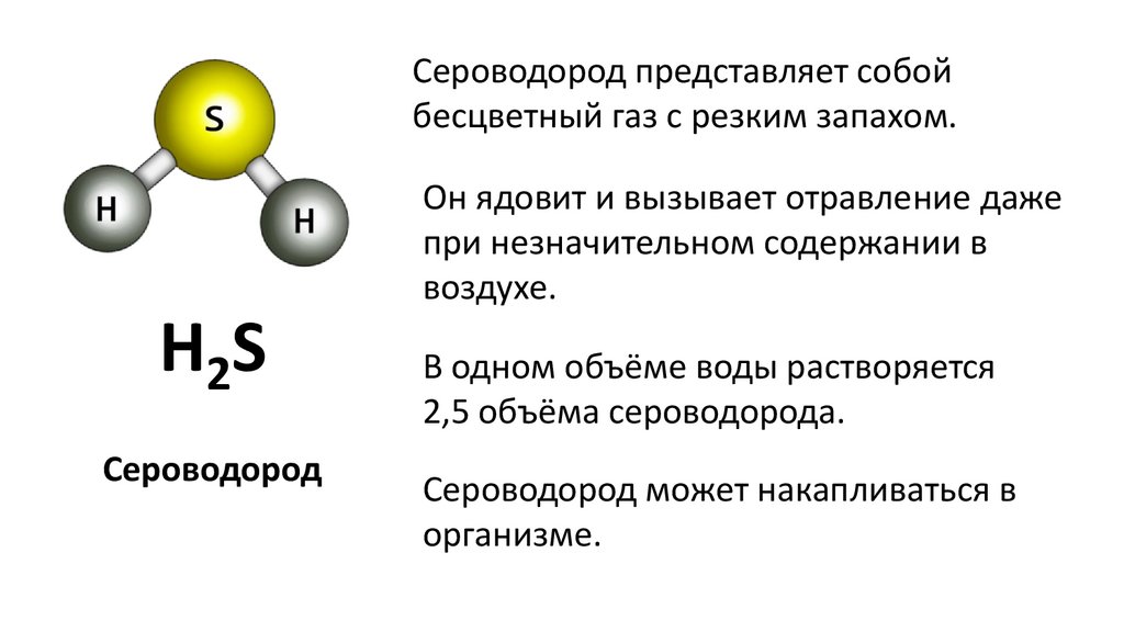 Сероводород представляет собойбесцветный газ с резким запахом.