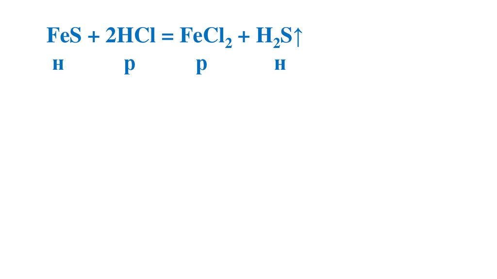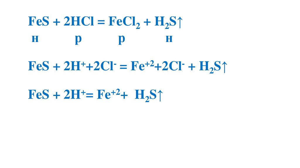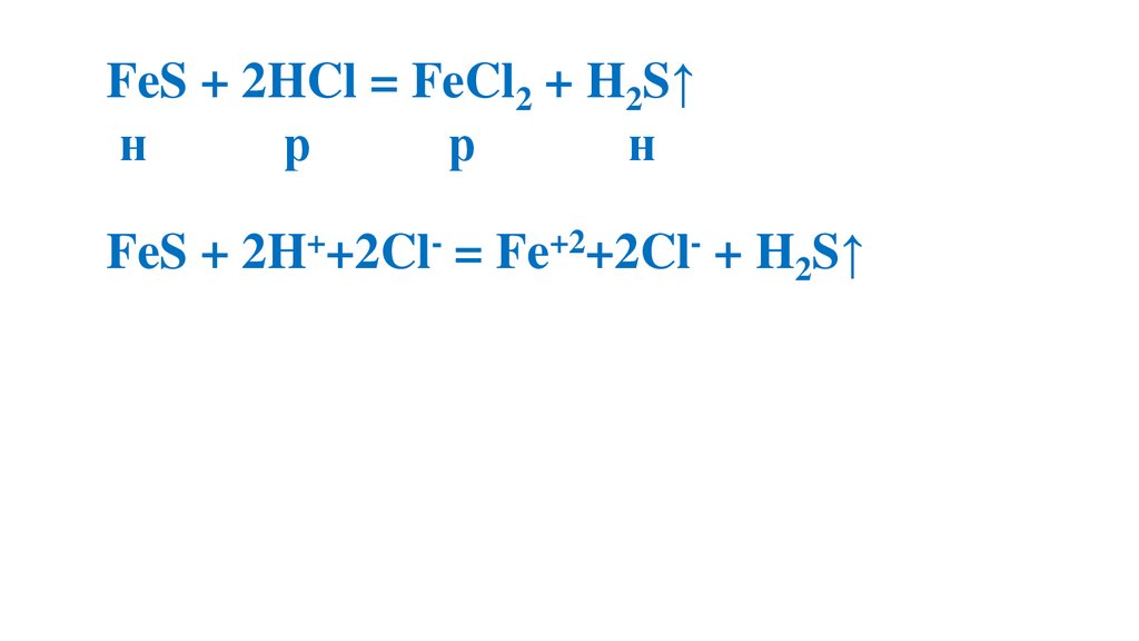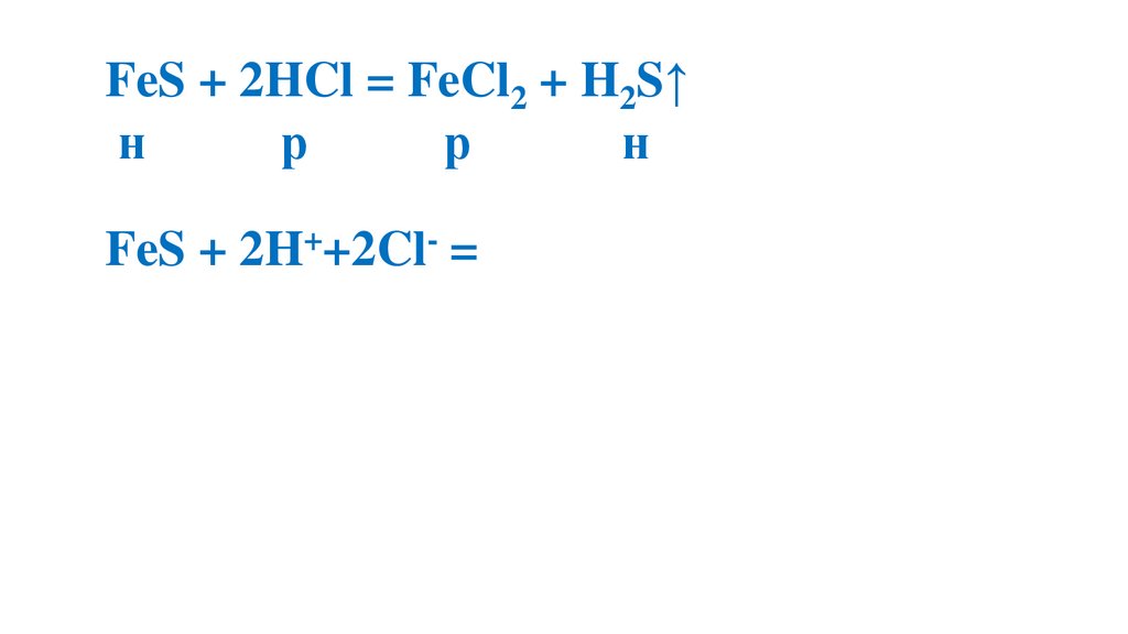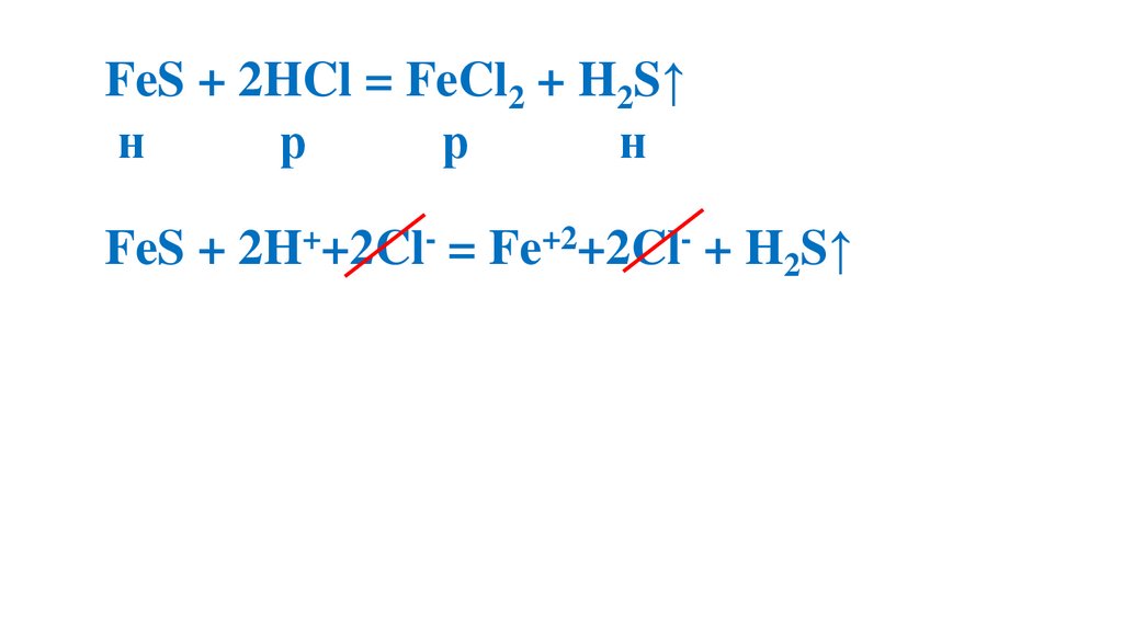FeS + 2H++2Cl- = Fe+2+2Cl- + H2S↑