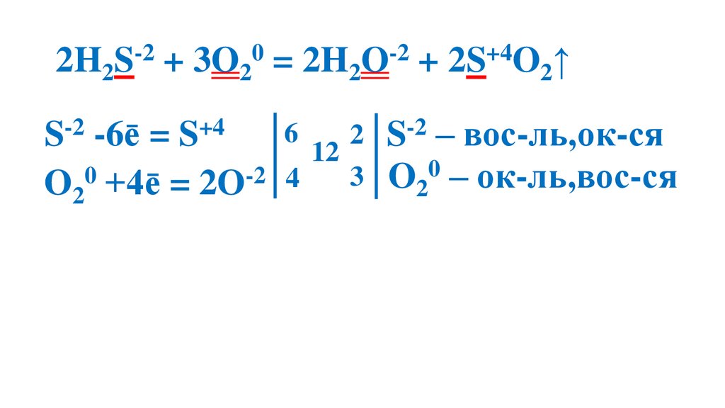 2H2S-2 + 3O20 = 2H2O-2 + 2S+4O2↑6