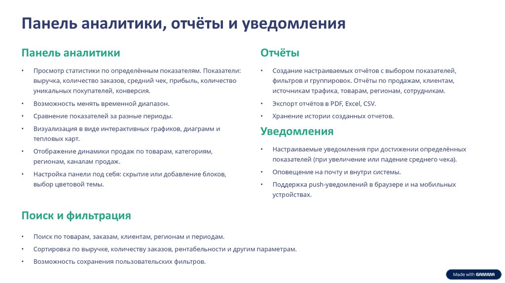 Панель аналитики, отчёты и уведомленияПанель аналитики
