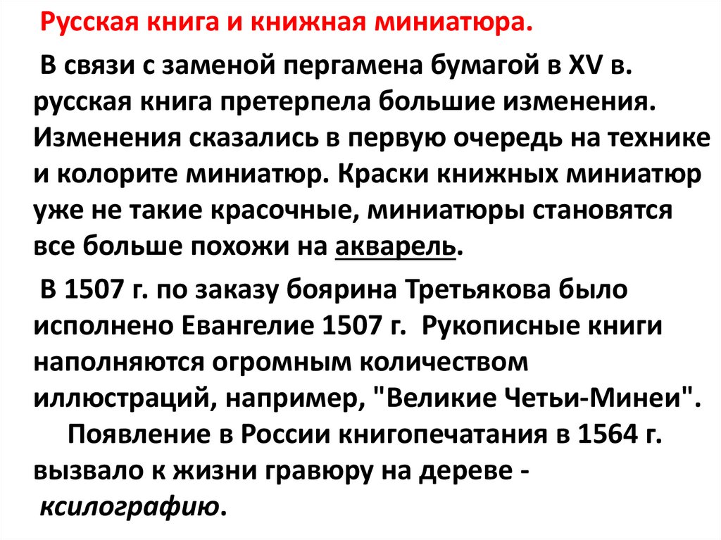Русская книга и книжная миниатюра.В связи с заменой пергамена бумагой в XV в.
