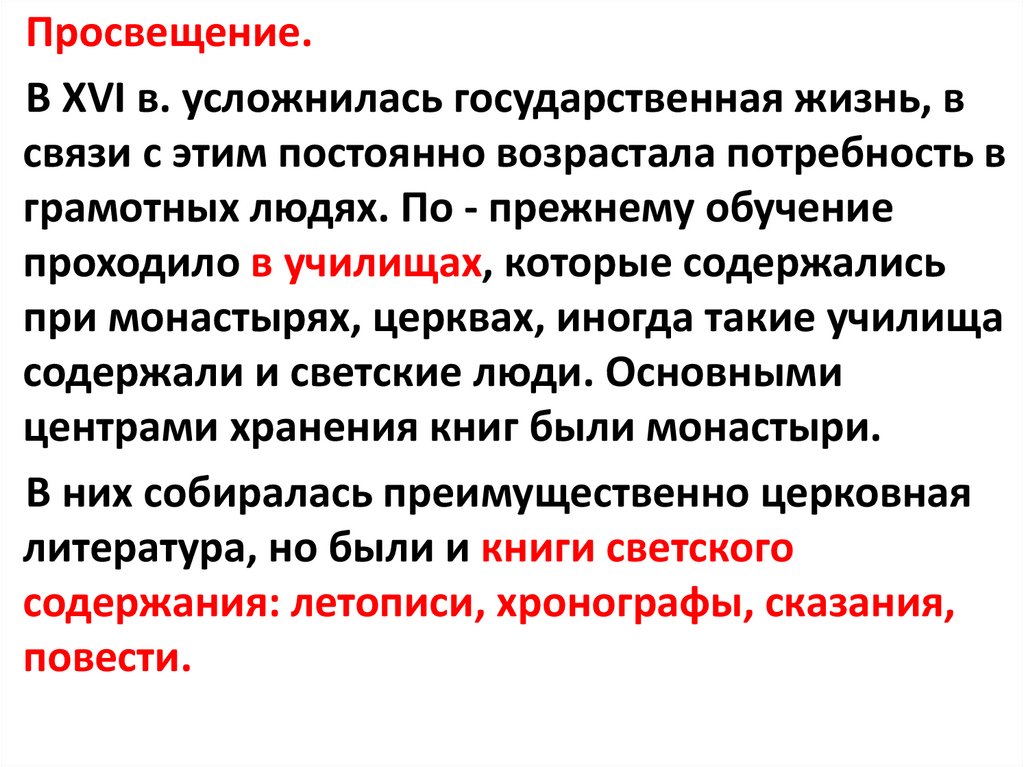Просвещение.В XVI в. усложнилась государственная жизнь, в