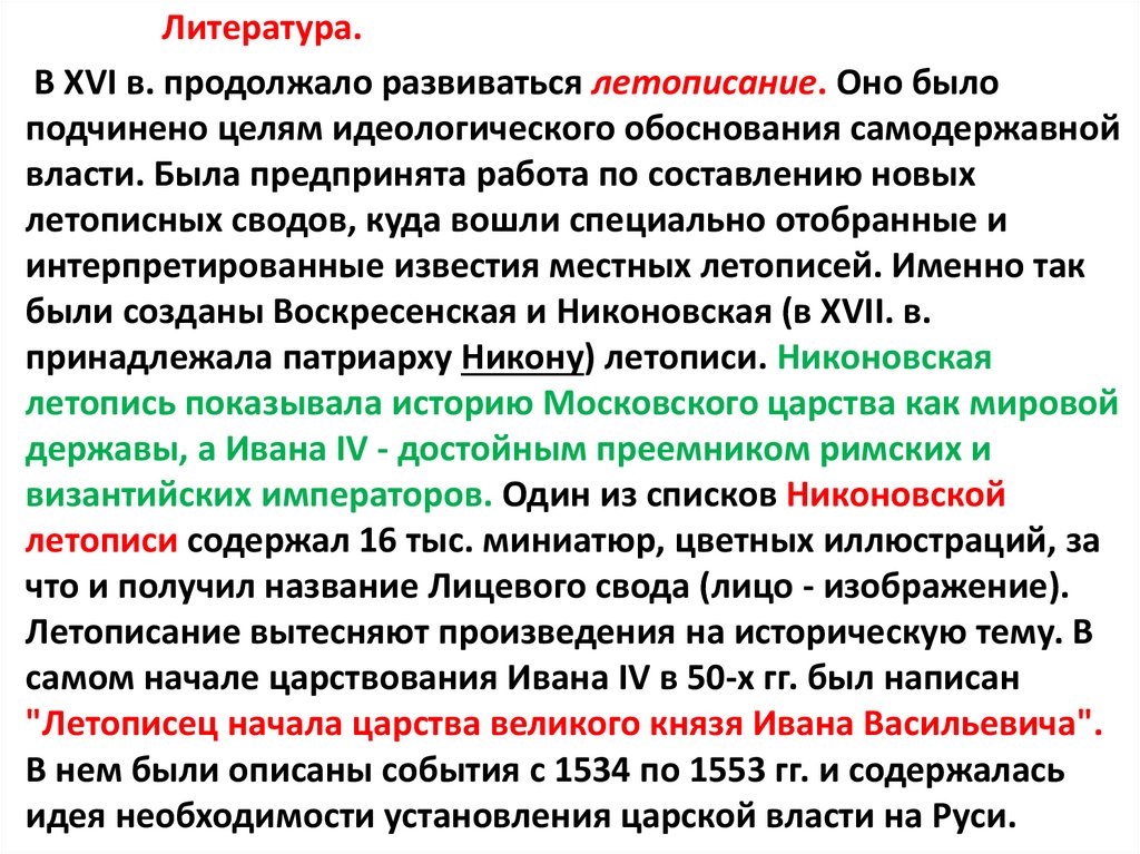 Литература.В XVI в. продолжало развиваться летописание. Оно было