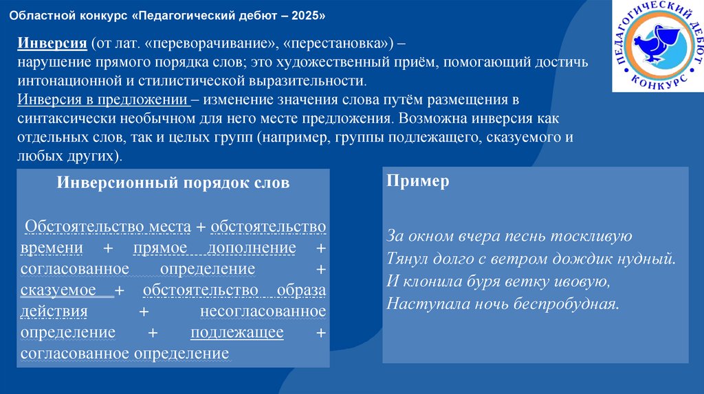 Областной конкурс «Педагогический дебют – 2025»Инверсионный порядок слов