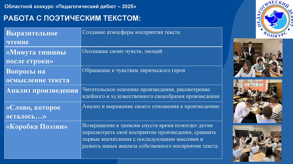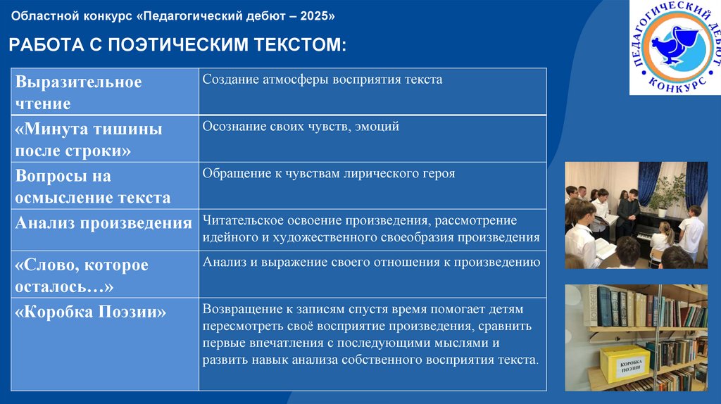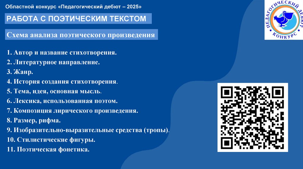 Областной конкурс «Педагогический дебют – 2025»РАБОТА С ПОЭТИЧЕСКИМ ТЕКСТОМ: