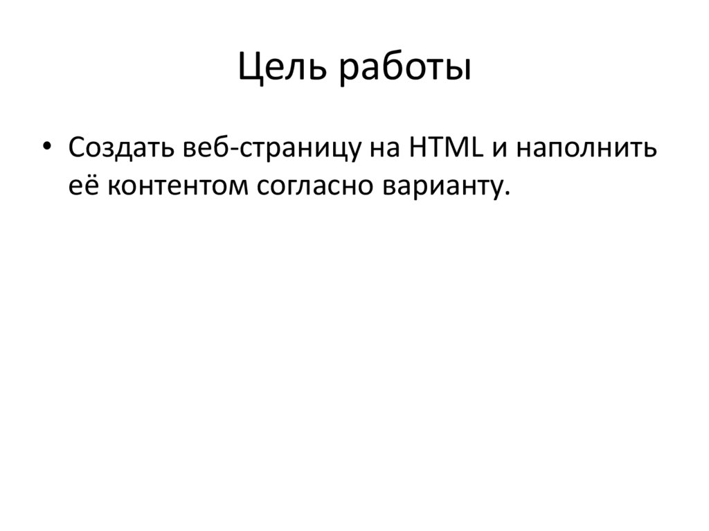 Цель работы• Создать веб-страницу на HTML и наполнить
