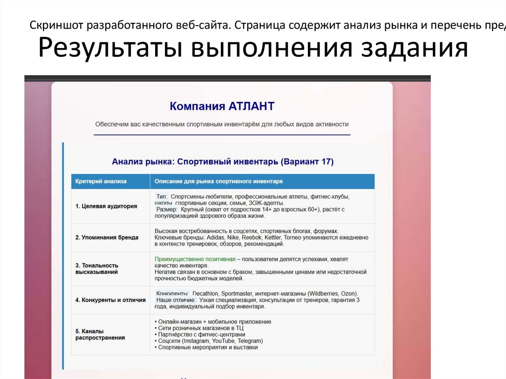 Скриншот разработанного веб-сайта. Страница содержит анализ рынка и перечень предРезультаты выполнения задания