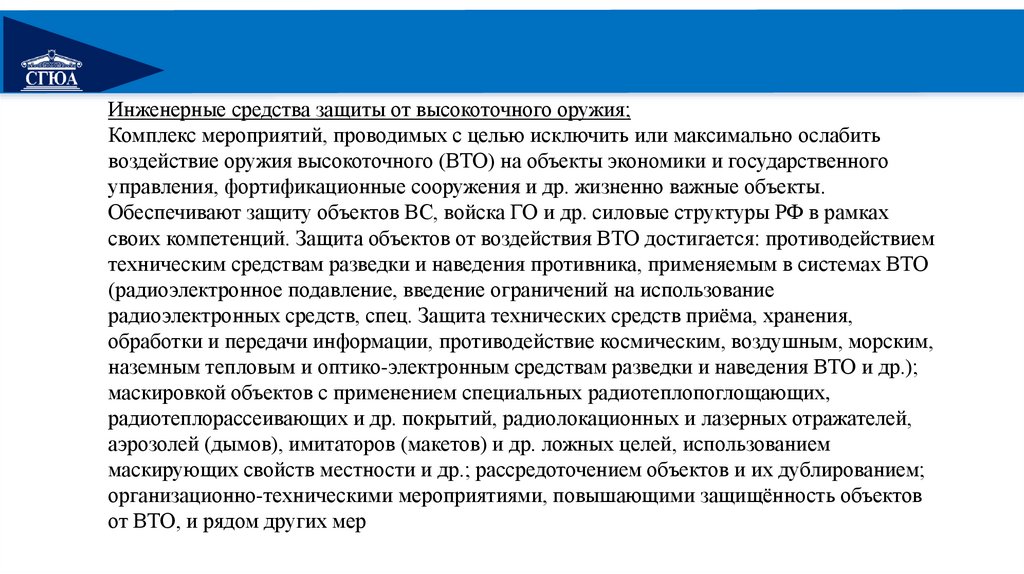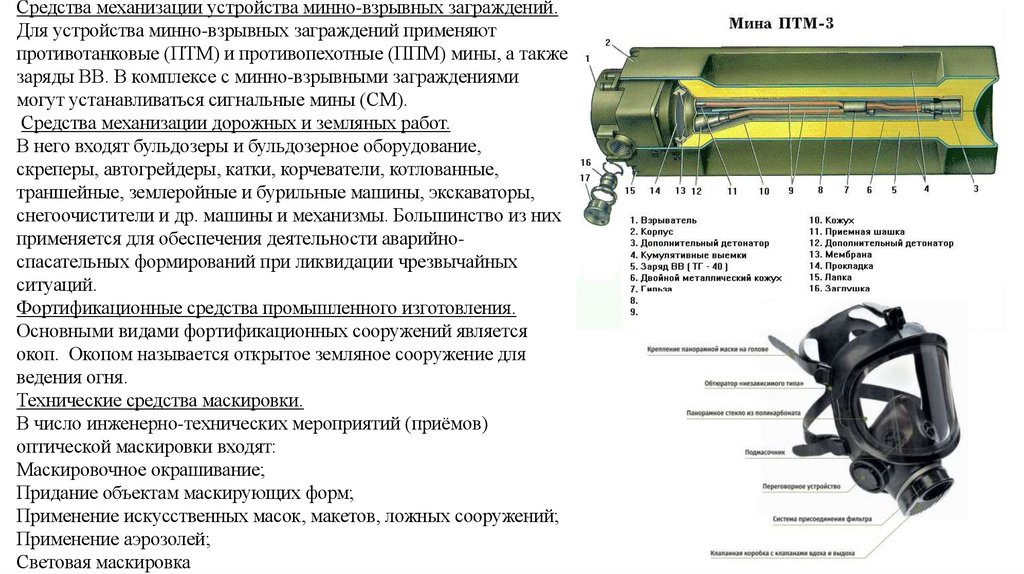 военной техники, материальных запасов и населения от средств поражения (щели, блиндажи,