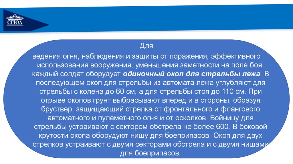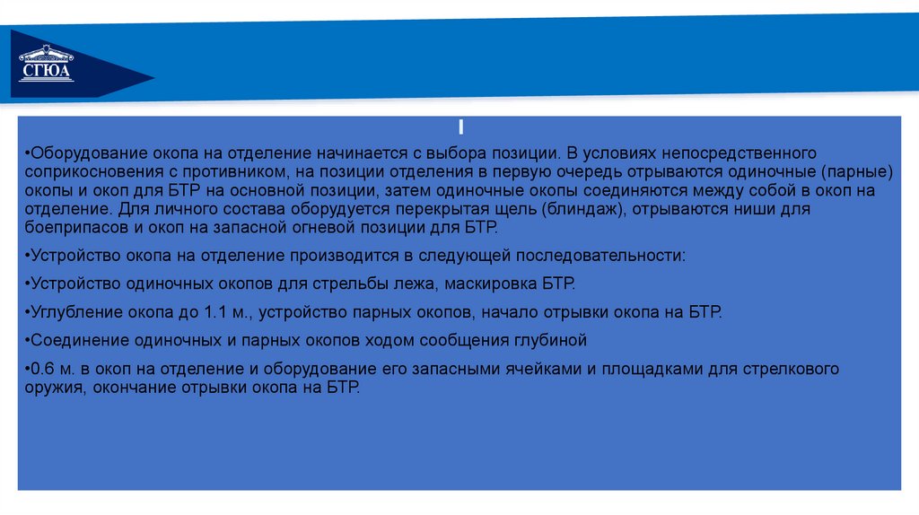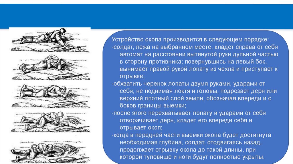 противником окоп на отделение вручную устраивается в той же последовательности и отрывку начинают с