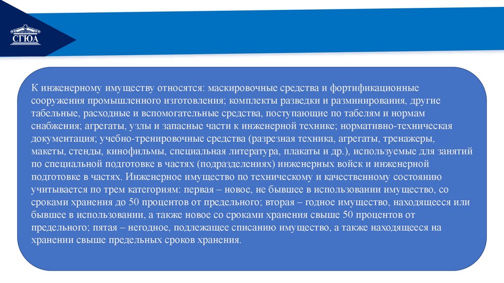 подготовке в частях. Инженерное имущество по техническому и качественному состоянию