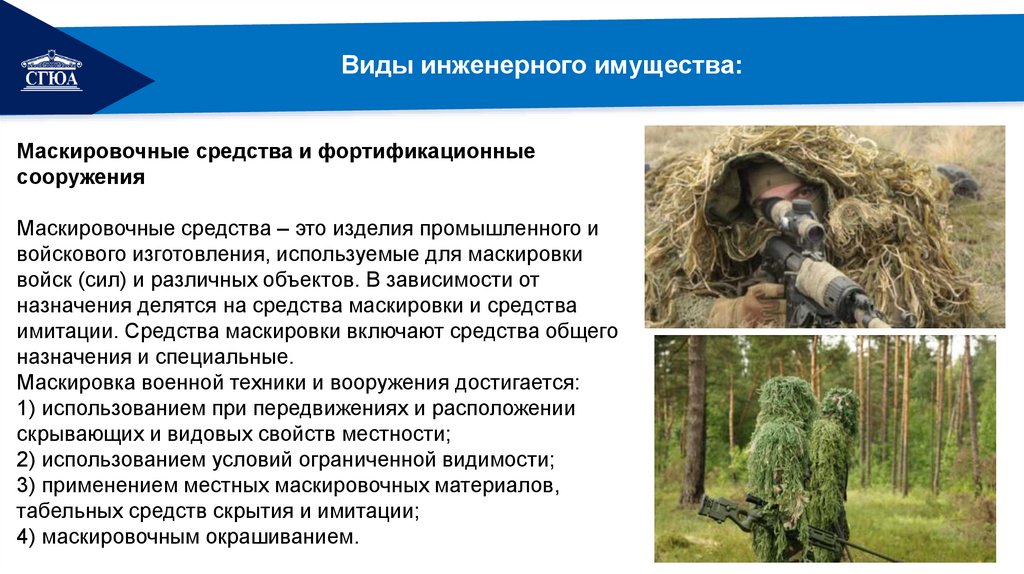 РЕМОНТК инженерному имуществу относятся: маскировочные средства и фортификационные