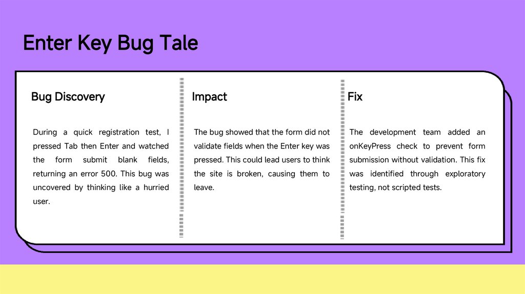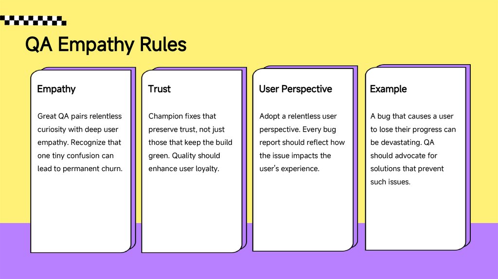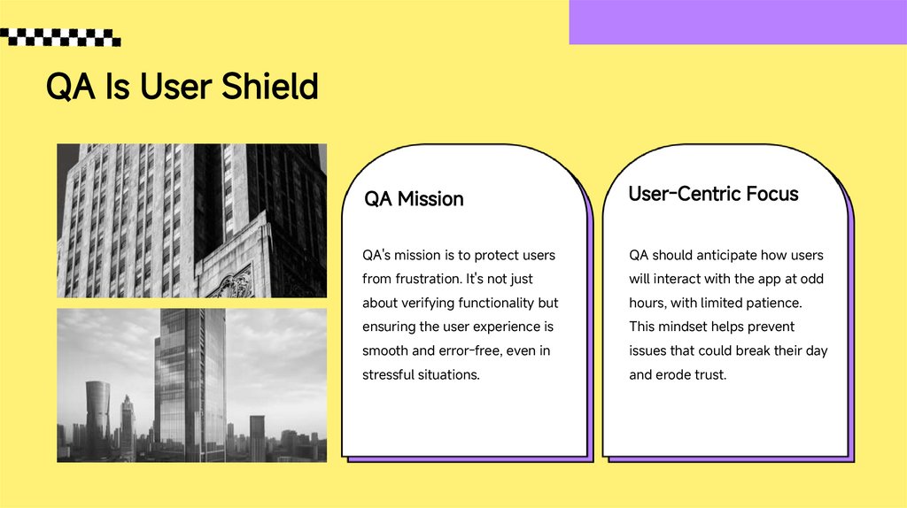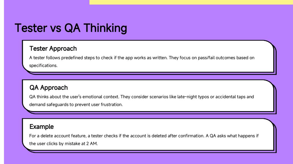 QA thinks about the user's emotional context. They consider scenarios like late-night typos or accidental taps and