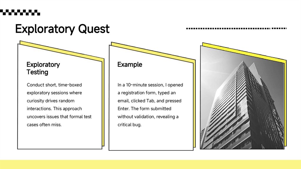 A tester follows predefined steps to check if the app works as written. They focus on pass/fail outcomes based on