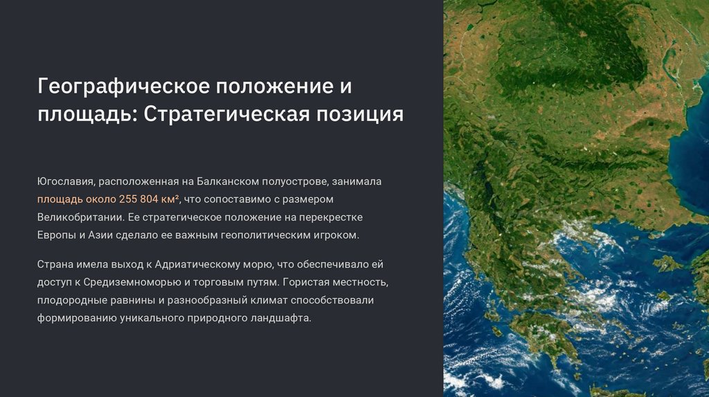 доступ к Средиземноморью и торговым путям. Гористая местность,