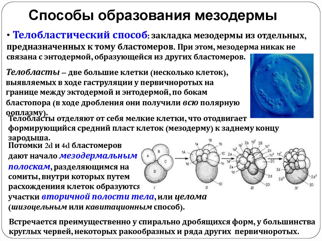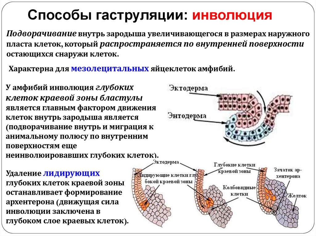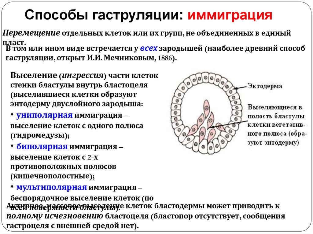 начале гаструляции. Они перемещаются от внутренней стенки зародыша в
