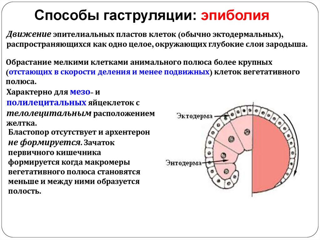 Актуально при эпиболии, когда обеспечивается низкий темп деления на