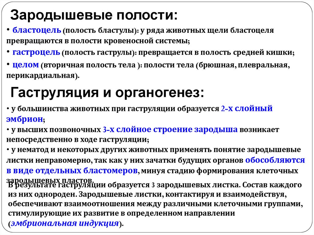 дробления, гаструляции, образования зародышевых