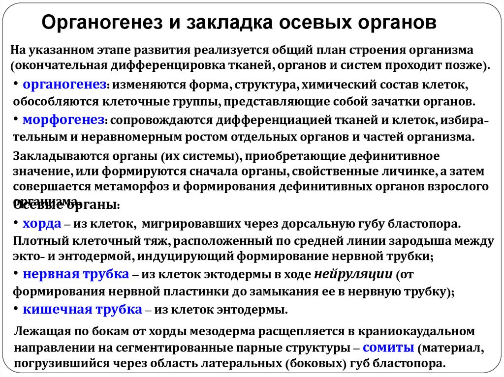 Органогенез и закладка осевых органовНа указанном этапе развития реализуется общий план строения организма
