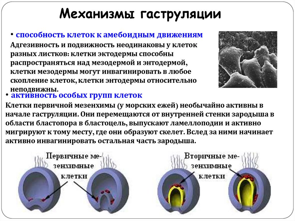 Механизмы гаструляции• способность клеток к амебоидным движениям