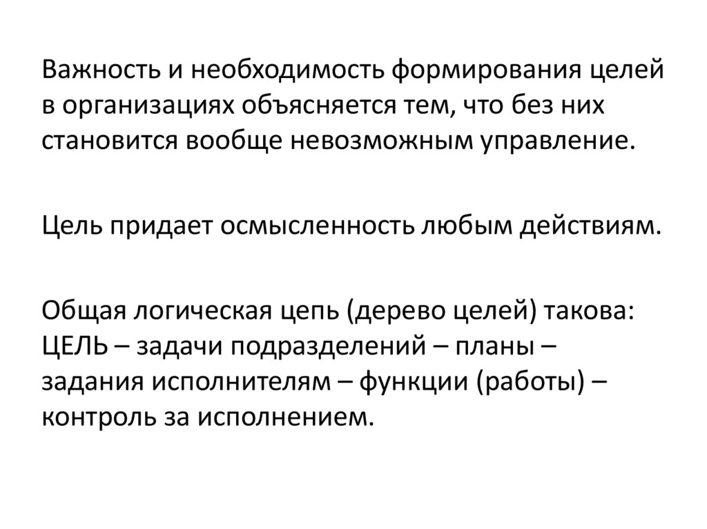 Важность и необходимость формирования целейв организациях объясняется тем, что без них