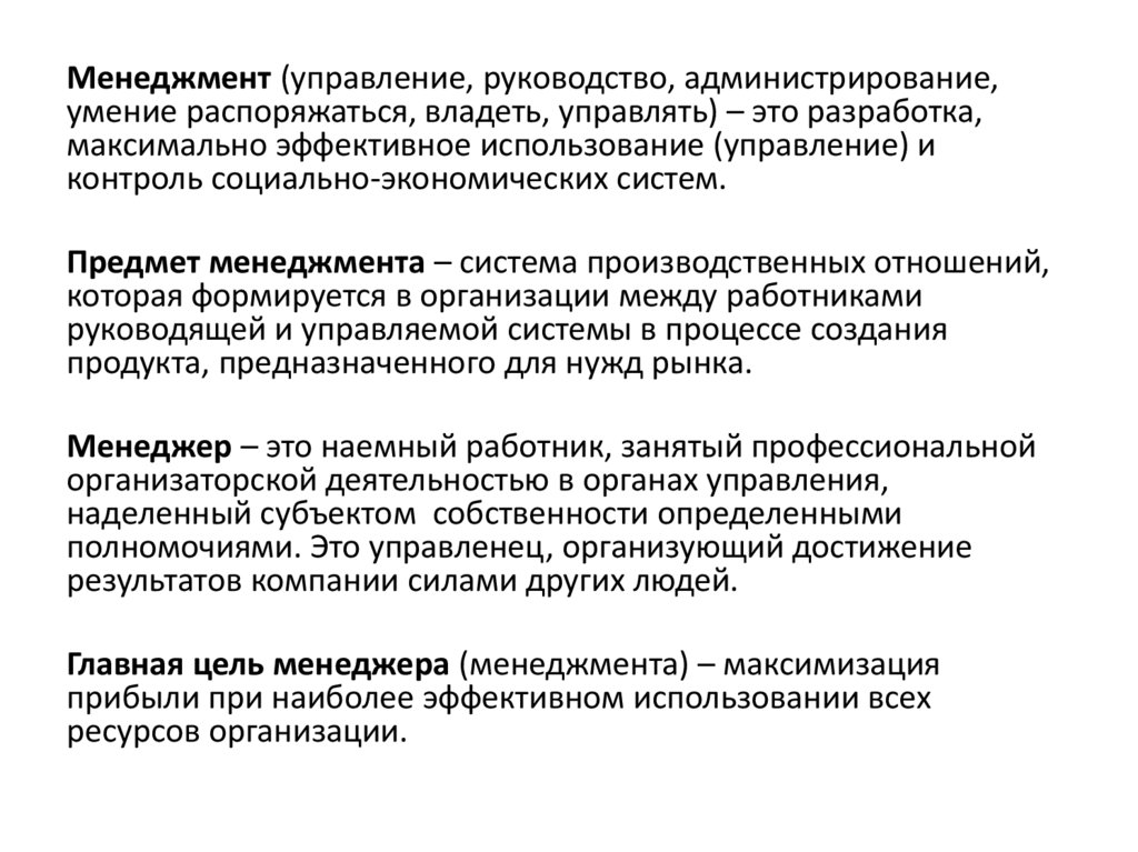 - Предмет менеджмента