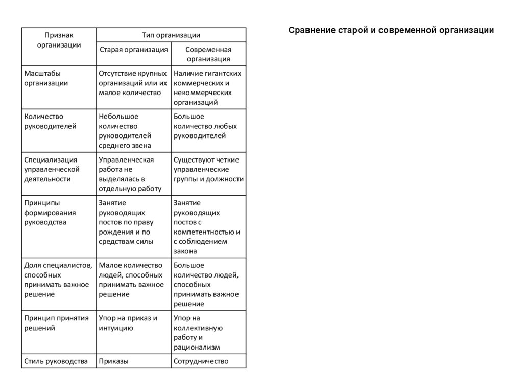 Сравнение старой и современной организации