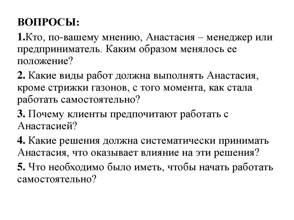 ВОПРОСЫ:1.Кто, по-вашему мнению, Анастасия – менеджер или