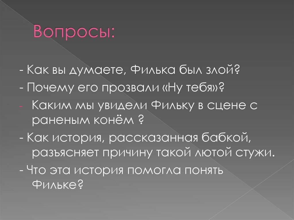 - Как вы думаете, Филька был злой?- Почему его прозвали «Ну тебя»?