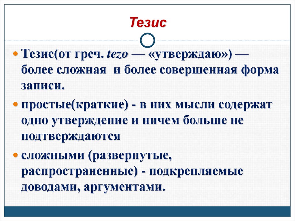 ТезисТезис(от греч. tezo — «утверждаю») —