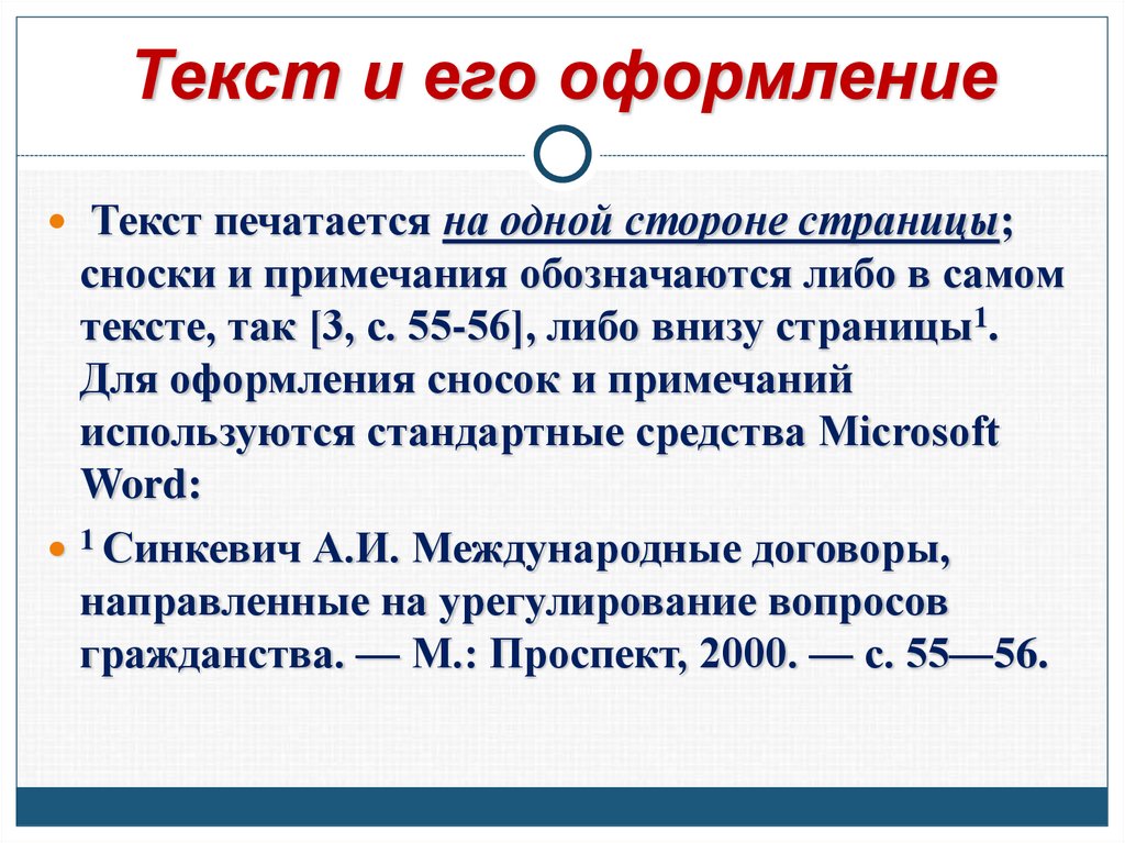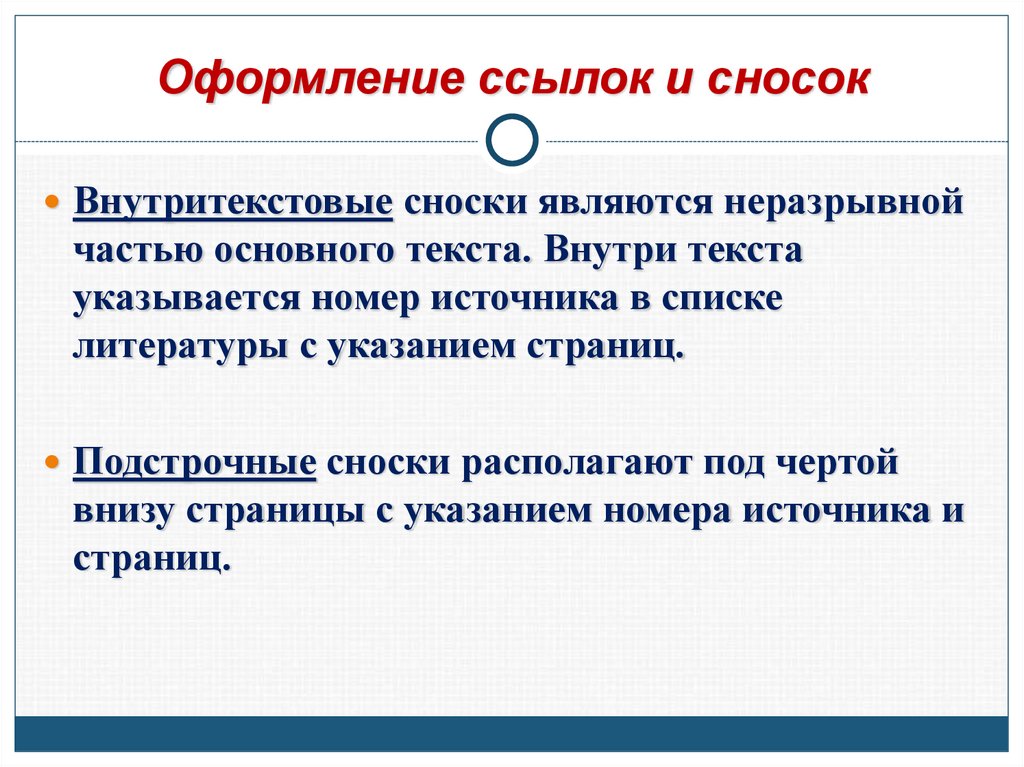 Оформление ссылок и сносокВнутритекстовые сноски являются неразрывной
