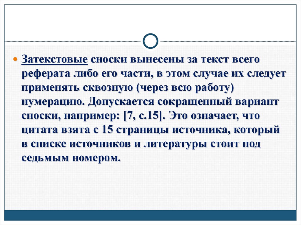Затекстовые сноски вынесены за текст всегореферата либо его части, в этом случае их следует